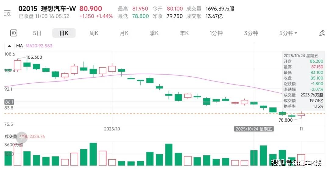 小米集团在“10·13”成都事故后,股价进入下行通道,理想汽车双股在10月23日之后均遭遇五连跌。