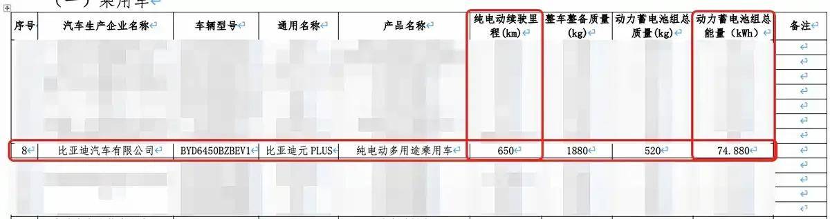 日前,我们从工信部发布的最新《第二十三批减免车辆购置税的新能源汽车车型目录》中获悉,比亚迪新元PLUS车型已完成申报,其中续航信息得以曝光。申报资料显示,新元PLUS将搭载一套容量为74.88kWh的电池组,CLTC工况下续航里程为650km。